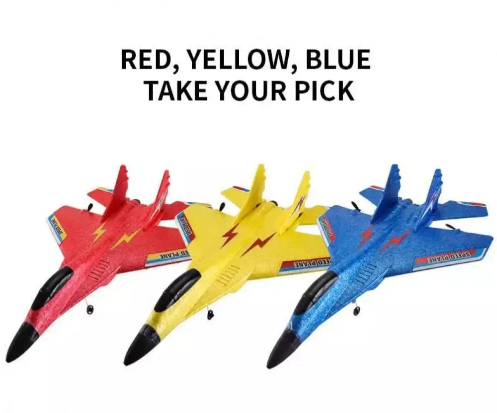 The 2.4 GHz remote control offers responsive handling with a long control range and zero signal interference, allowing multiple planes to fly simultaneously โ perfect for outdoor group fun. Choose from three vibrant colors โ Red, Yellow, or Blue โ and rule the skies with your personal fighter jet!
